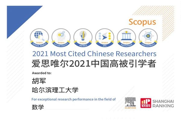 哈理工大學胡軍教授蟬聯(lián)“中國高被引學者”榜單