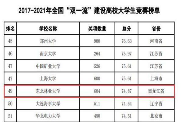 東北林業(yè)大學(xué)連續(xù)四年蟬聯(lián)全國農(nóng)林類本科院校大學(xué)生競(jìng)賽排行榜榜首