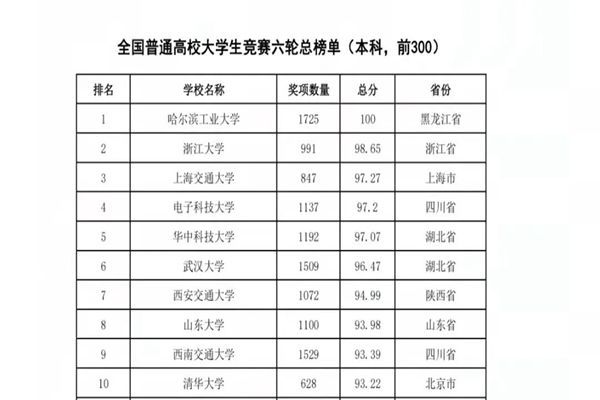 哈爾濱工業(yè)大學(xué)連續(xù)三年獲得全國普通高校大學(xué)生競(jìng)賽榜單冠軍