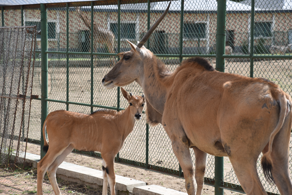 比起環(huán)尾狐猴媽媽的悉心照料,四月份在非洲草食動物散放區(qū)新出生的雄性小羚羊就很令人擔(dān)心,因?yàn)槟懶〉男率謰寢尣粫樟虾⒆樱运蛔屪约彝藿?,不給娃吃奶。飼養(yǎng)員看到這種情況采取了人工輔助的辦法,把奶擠出來讓小羚羊吃到初乳。雖然媽媽一直躲著自己,但是小羚羊堅持要“親力親為”吃奶。飼養(yǎng)員就拿食物在前面引誘羚羊媽媽,讓它站立安穩(wěn)點(diǎn),時間長一點(diǎn),小羚羊慢慢靠近就可以吃到母乳啦!現(xiàn)在大羚羊媽媽已經(jīng)完全能接受這個小家伙了,常常依偎在一起。解決了小羚羊的吃飯問題后,小家伙就開始茁壯成長,一天比一天活波可愛。