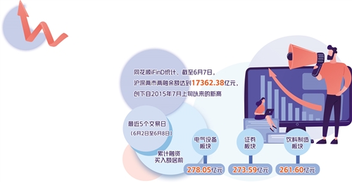 據(jù)同花順iFinD統(tǒng)計,截至6月7日,滬深兩市兩融余額達到17362.38億元,創(chuàng)下自2015年7月上旬以來的新高;截至6月8日,融資余額為15857.35億元,同樣創(chuàng)下2015年7月上旬以來的新高。