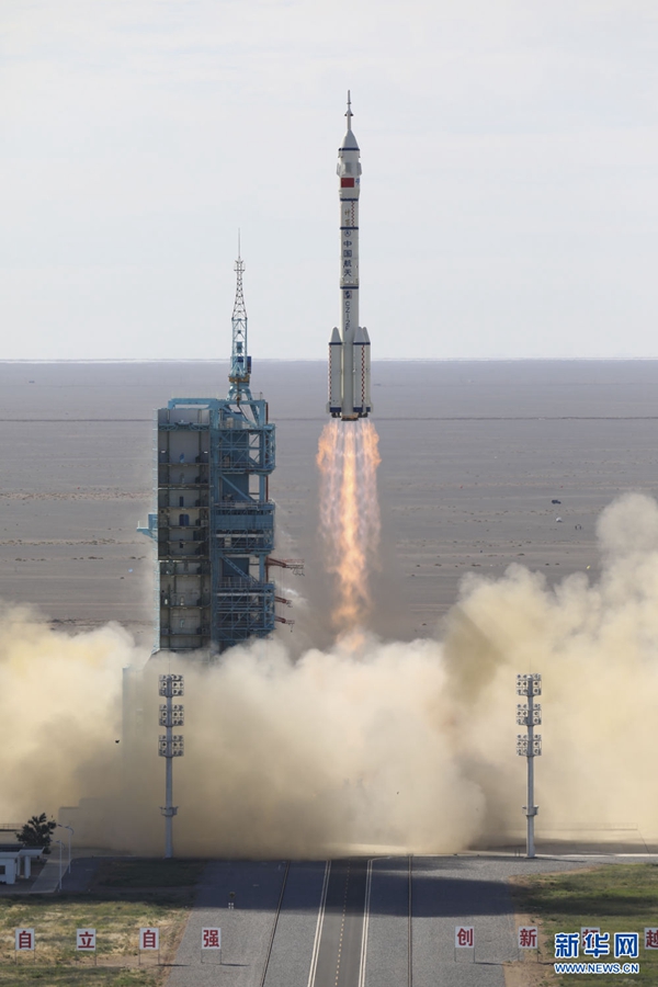 2021年6月17日9時(shí)22分,搭載神舟十二號(hào)載人飛船的長(zhǎng)征二號(hào)F遙十二運(yùn)載火箭,在酒泉衛(wèi)星發(fā)射中心準(zhǔn)時(shí)點(diǎn)火發(fā)射,約573秒后,神舟十二號(hào)載人飛船與火箭成功分離,進(jìn)入預(yù)定軌道,順利將聶海勝、劉伯明、湯洪波3名航天員送入太空,飛行乘組狀態(tài)良好,發(fā)射取得圓滿成功。新華社記者 李剛 攝