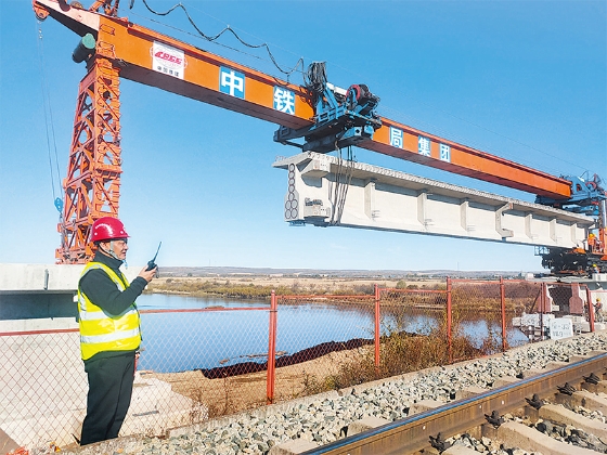 據(jù)介紹,前不久北黑鐵路升級改造工程新建24座鐵路橋中的另一座孫吳段大河口中橋架梁已經(jīng)完成。橋梁位于孫吳縣境內,橋長112.73米,孔跨布置為3×32米,下部結構和T梁預制施工由中鐵十局完成,梁體架設由中鐵十六局集團第五工程有限公司負責完成。