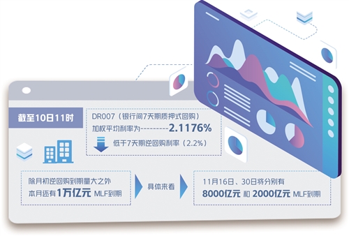 市場(chǎng)資金利率走勢(shì)整體平穩(wěn),恰恰反映出市場(chǎng)對(duì)流動(dòng)性保持合理充裕已有較充分預(yù)期。此前,由于11月公開(kāi)市場(chǎng)操作工具及中期借貸便利(MLF)到期量大,疊加繳稅、專項(xiàng)債發(fā)行量較大、財(cái)政支出等因素影響,有部分市場(chǎng)人士擔(dān)心,國(guó)內(nèi)資金面將受到短期擾動(dòng),資金面或?qū)②吘o。