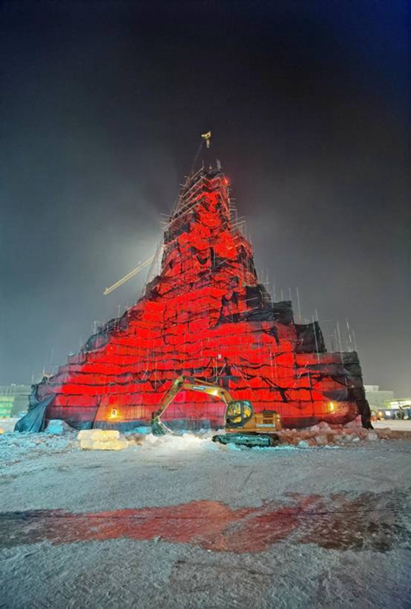 規(guī)模最大的冰景建筑“圣火之巔”完工,標(biāo)志著第二十三屆哈爾濱冰雪大世界開園進(jìn)入了倒計時階段。園區(qū)內(nèi)其他冰雪景觀正在緊張施工中,一個流光溢彩、炫麗耀眼的冰雪樂園,即將呈現(xiàn)在世人面前。
