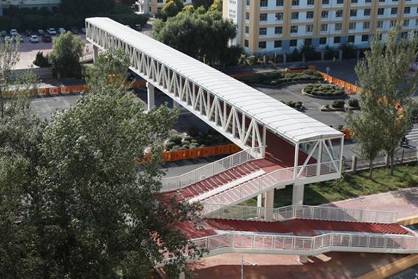 2021年秋季學(xué)期開學(xué)初,一座跨度最大、設(shè)計美觀的人行天橋?qū)⒐枮I理工大學(xué)南區(qū)征儀路兩側(cè)的校園連接在一起。哈爾濱理工大學(xué)以聚焦民生集中發(fā)力,與市政部門積極溝通并由市政府出資1300余萬元,建設(shè)了全長85.5米,寬5米,橫跨征儀路的理工南區(qū)過街天橋。天橋的建成不僅解決了師生出行安全和防疫隱患,更為學(xué)生上課、就餐提供了十分便利通行條件,天橋設(shè)計美觀、通行便捷,一落成就成為了冰城“最美天橋”和理工校園“網(wǎng)紅”打卡地。
