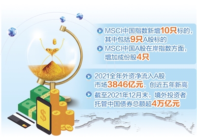 與此同時(shí),境外投資者持有中國債券規(guī)模也創(chuàng)下歷史新高。數(shù)據(jù)顯示,截至2021年12月末,境外投資者托管中國債券總額超4萬億元。