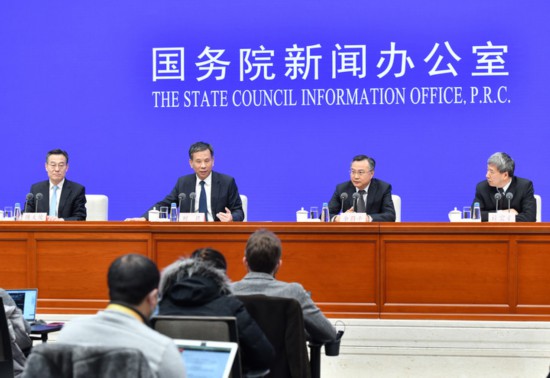2月22日,財(cái)政部部長劉昆、財(cái)政部副部長余蔚平、財(cái)政部副部長許宏才出席國新辦新聞發(fā)布會(huì)。新華社記者李鑫攝