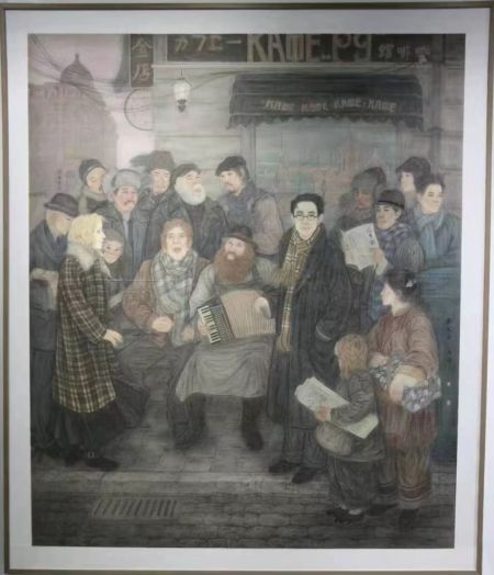 哈爾濱理工大學蔣博老師積極響應黑龍江省“重大歷史題材”美術創(chuàng)作工程,與愛人吳天文共同努力,攜手創(chuàng)作出了《瞿秋白·心中流淌的國際歌》這件作品。經(jīng)過初期大量的搜集歷史資料,再到草圖的繪制,最后定稿繪制完成,前后歷時近三年。這幅作品的靈感來源于1921年瞿秋白以記者的身份訪俄,在哈爾濱一個多月的滯留期間,感受到了共產(chǎn)主義的氣息,第一次聽到了由俄國人傳唱的《國際歌》。凝重的節(jié)奏與激昂的旋律催人覺醒,使人奮進。隨后他決定將這首歌翻譯成中文,通過簡化之后的巧妙翻譯以更加通俗易懂的口吻使民眾接受而廣為傳唱。