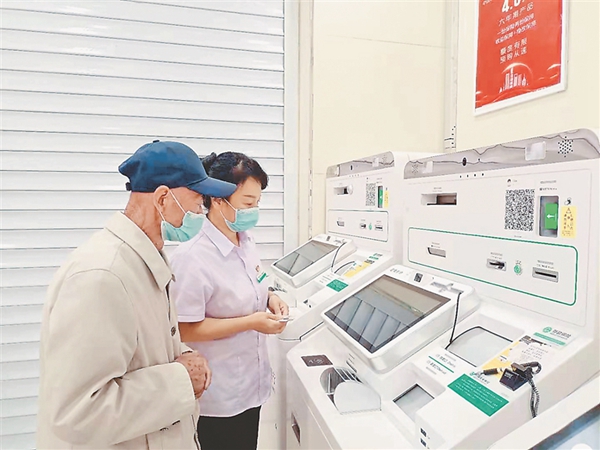 銀行工作人員指導老年人辦理業(yè)務破解數(shù)字鴻溝。