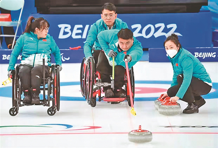 北京冬殘奧會的第一天,中國輪椅冰壺隊開局不利,先后不敵加拿大隊和瑞典隊,壓力可想而知。之后中國隊迅速調(diào)整狀態(tài)。6日,9:3戰(zhàn)勝愛沙尼亞隊,贏得循環(huán)賽首勝。7日,接連戰(zhàn)勝韓國隊和瑞士隊,以三勝兩負的戰(zhàn)績與拉脫維亞隊并列第三名。11日,中國隊對陣加拿大隊爭奪決賽名額。12日,輪椅冰壺決賽中,中國隊在前四局1:2落后瑞典隊的情況下改變戰(zhàn)術(shù),利用對手失誤成功拿到4分。最終,中國輪椅冰壺隊8:3戰(zhàn)勝瑞典奪得冠軍。