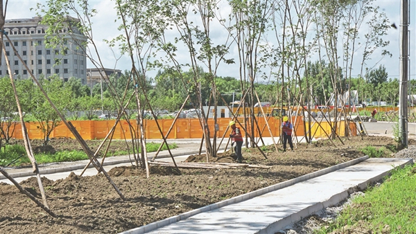 黑龍江日報訊(王藝凝 黑龍江日報全媒體記者薛婧 黑龍江日報全媒體見習(xí)記者董廣碩)近日,記者在哈爾濱新區(qū)的國貿(mào)中央廣場項(xiàng)目(一期)建設(shè)現(xiàn)場看到,工人們頂著炎炎烈日運(yùn)送建筑材料、栽種路旁的各式綠植。經(jīng)過近一年的加緊施工,廣場已初具規(guī)模。據(jù)該項(xiàng)目負(fù)責(zé)人介紹,為盡早豐富居民的文化生活,工作人員正搶抓工期,預(yù)計比原計劃提前一年完成建設(shè),力爭今年年底前完工。