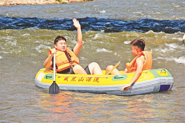 進入暑期,威虎山水上樂園迎來了狂歡季,徜徉在清爽的造浪池內(nèi),陽光與森林山泉做伴,感受夏日的獨特魅力。在水上樂園嬉戲過后,到二道河漂流是游客的不二選擇。漂流河段全長8公里,河道急緩適當,兩岸自然風光渾然天成。