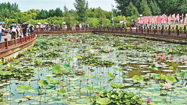 第二十六屆方正蓮花節(jié)開幕當天,湖光瀲滟、蓮花盛放的方正湖畔人潮如織,市民和游客一覽千畝蓮花盛開的美景。