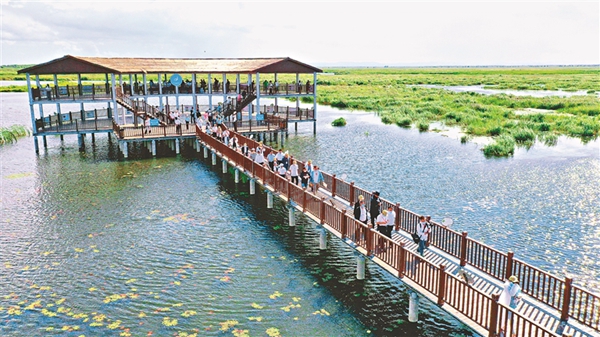 近日,寶清縣七星河國家級自然保護(hù)區(qū)濕地內(nèi)迎來大批游客,一望無際的濕地和葦塘讓游客心曠神怡。游客登上觀鳥臺,俯瞰濕地,夕陽下大批的水鳥在七星河內(nèi)覓食嬉戲,“葦蕩連天碧,水鳥漫云空”,一幅人與自然和諧共生的真實寫照。