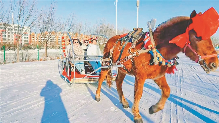 四新關(guān)東雪村打卡亮點(diǎn):越野車?yán)┤?。設(shè)置了雪地摩托、越野車?yán)┤Α⒀┑剞D(zhuǎn)轉(zhuǎn)、雪地碰碰球等冰雪游樂(lè)項(xiàng)目。