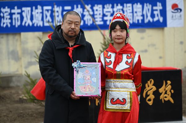 在動人的音樂聲中,張博先生和與會領(lǐng)導(dǎo)們一同為“趙元忱希望學(xué)?!苯遗?,此刻孩子們的臉上洋溢著幸福的的笑容。希望滿載愛心的希望學(xué)校在為黨育人、為國育才的道路上發(fā)揮更加堅實的作用。