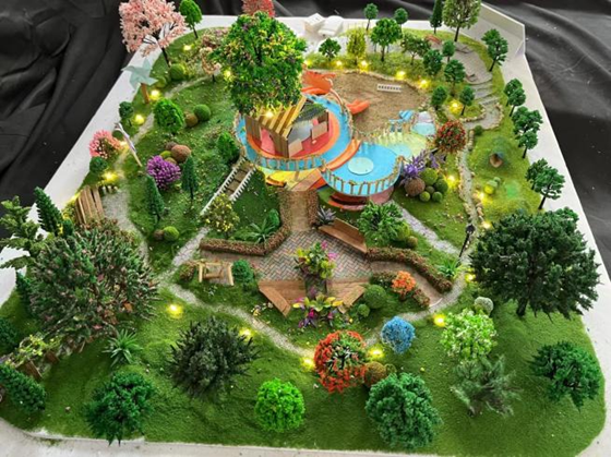 作品展指導(dǎo)教師之一王丹告訴記者:“學(xué)生們設(shè)計(jì)的所有校園環(huán)境景觀模型,都是根據(jù)東北林大校園內(nèi)的實(shí)際地塊結(jié)合周邊情況精心測繪和調(diào)研后設(shè)計(jì)制作的。通過此次實(shí)踐課程,使同學(xué)們了解海綿城市、雨水花園、風(fēng)能、太陽能等相關(guān)生態(tài)知識,實(shí)現(xiàn)理論與實(shí)踐相結(jié)合,在設(shè)計(jì)過程積極踐行生態(tài)文明理念,傳承和發(fā)揚(yáng)東林特色與精神?!?