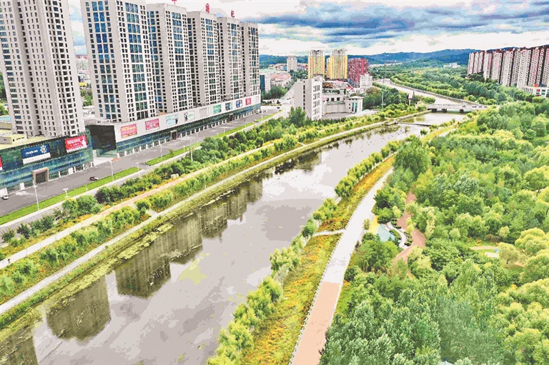 周末,雙鴨山市市政廣場附近的安邦河畔,花草樹木郁郁蔥蔥,風景如畫。