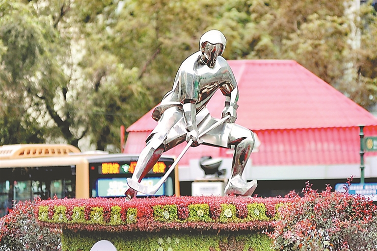 冰球運動雕塑。