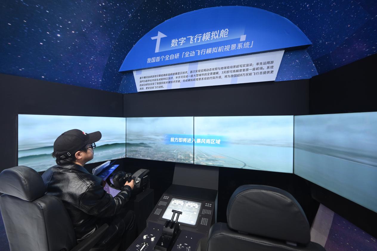 “只需要推動(dòng)操縱桿,就能操作系統(tǒng),體驗(yàn)民航飛行員第一視角下、擬真的訓(xùn)練場景……”在展區(qū)前方,由南航自研虛像顯示技術(shù)和騰訊自研游戲引擎技術(shù)共同打造的全動(dòng)飛行模擬機(jī)視景系統(tǒng),吸引眾多參觀者體驗(yàn)?;隍v訊自研游戲引擎,系統(tǒng)首次實(shí)現(xiàn)全局動(dòng)態(tài)光照與地球級(jí)場景超寫實(shí)渲染,多邊形生成面數(shù)較之前提升380倍、貼圖精細(xì)度提升100倍,助力實(shí)現(xiàn)我國民航關(guān)鍵技術(shù)突破。