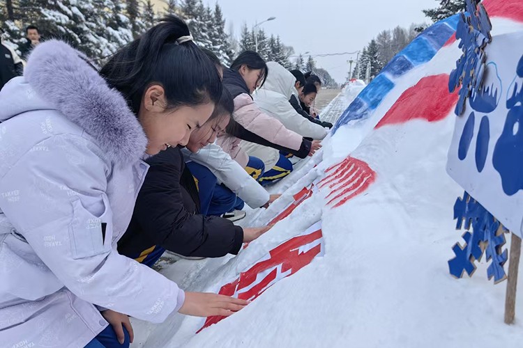 在銀裝素裹的校園里,師生們充分發(fā)揮想象力和創(chuàng)造力,一起堆雪、塑型、裝飾,在制作過程中,他們紛紛拿起手中的工具,鏟、挖、雕、刻,全神貫注地投入到雪雕創(chuàng)作中。轉眼間,一個個形態(tài)各異、栩栩如生的雪雕作品誕生,為冬日的校園增添了一份別樣的詩情畫意,也飽含著全體師生對亞冬會的美好祝福和對冰雪運動的熱愛。