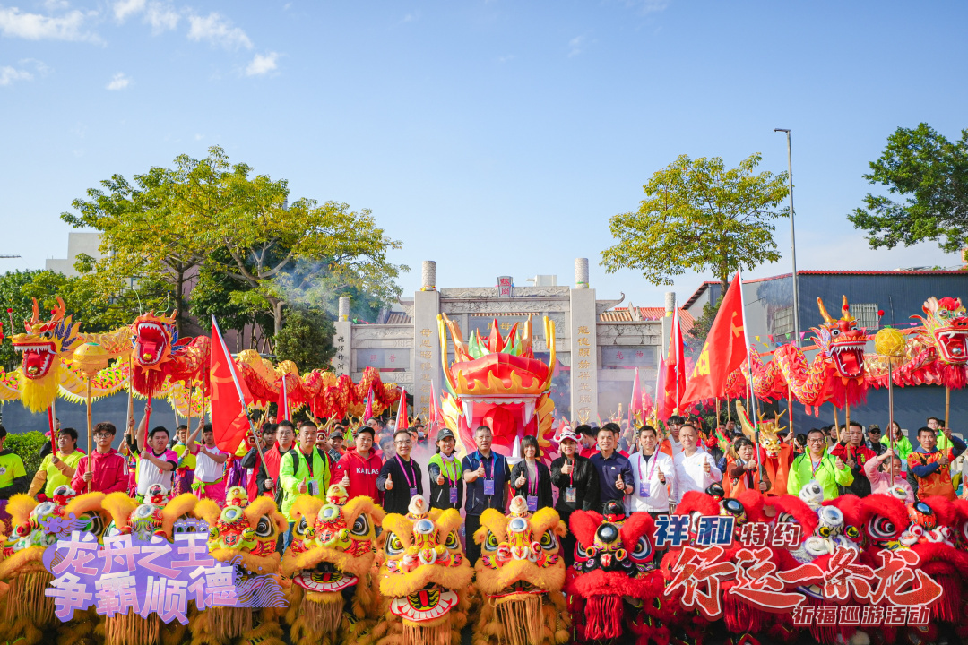 解鎖龍文化,體驗新玩法;打造新民俗,巡游好歡樂?!靶羞\一條龍”祈福巡游活動是順德全新打造的龍舟文化新民俗,現(xiàn)已成功舉辦兩屆。巡游以“拜龍母”“龍眼點睛”等民俗儀式為核心,凝練“行龍運,接龍?!钡脑⒁?,讓市民游客近距離感受民俗活動的獨特魅力。