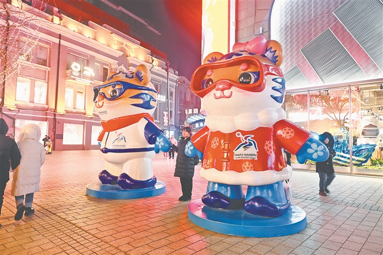 隨著亞冬會(huì)的腳步越來(lái)越近,哈爾濱市的大街小巷,隨處可見(jiàn)亞冬會(huì)元素,吉祥物“濱濱”和“妮妮”在街頭一直是游客和市民的萌寵。