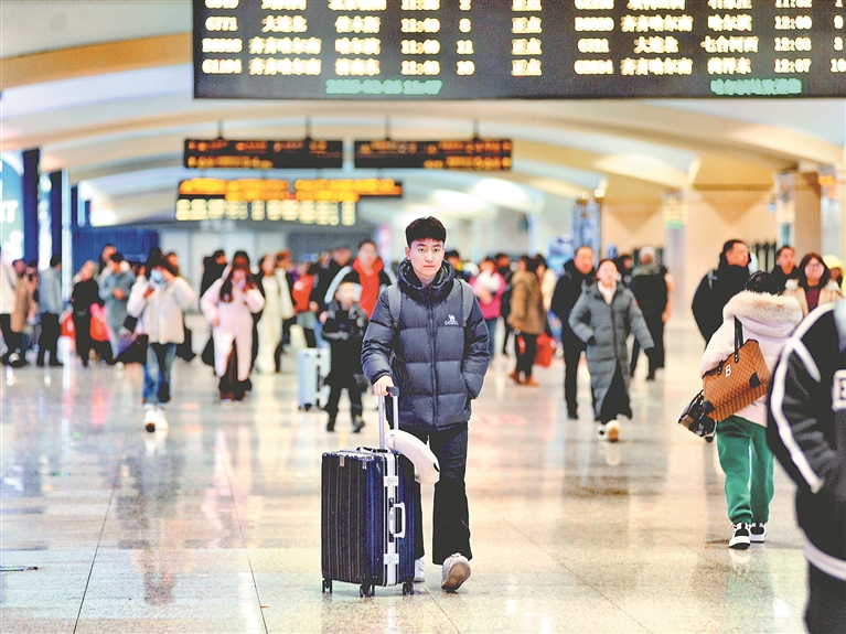 26日,哈爾濱火車站出站口,許多大學生推著行李箱,走出車站,返回學校,開啟新學期的學習生活。
