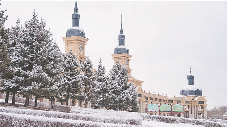 經(jīng)過(guò)一夜的降雪,27日,哈爾濱市的街頭、樹(shù)木、房頂、車頂都積了厚厚一層雪,整座城市變成了一個(gè)白色的童話世界。