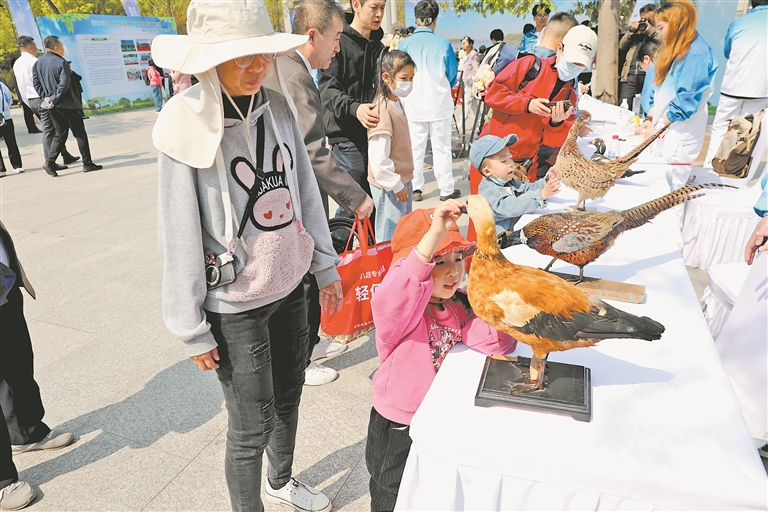 活動現(xiàn)場,野生動物保護志愿者和高校大學生代表分別發(fā)起愛鳥護鳥倡議和宣言,播放了鳥類保護宣傳片,通過優(yōu)秀巡護員的經(jīng)驗分享,以及各類標本展示、宣傳展板等方式向公眾宣傳保護鳥類的知識和相關(guān)法律法規(guī)。
