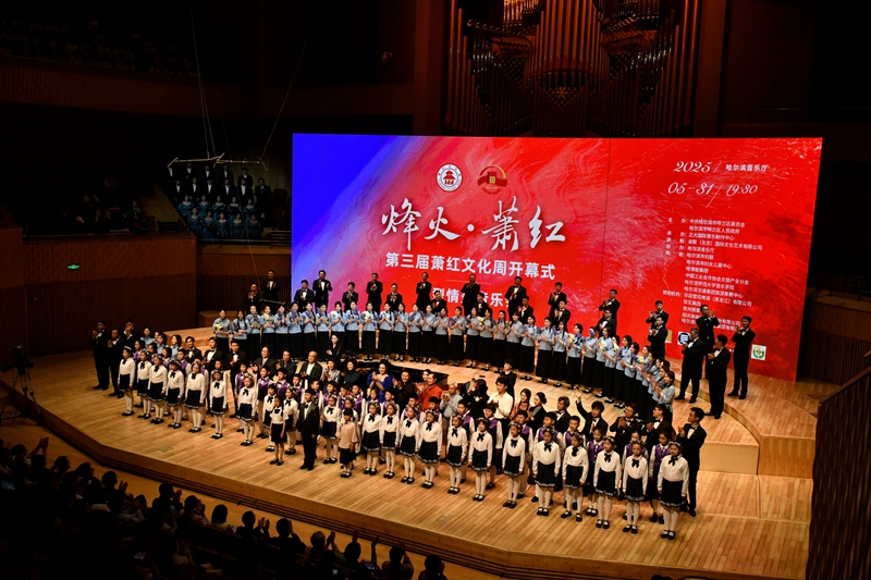 “蕭紅已成為黑土地的精神路標(biāo)!蕭紅作品中對(duì)人民的悲憫、對(duì)命運(yùn)的抗?fàn)帯?duì)家國(guó)的摯愛(ài),恰是東北文化與中華民族精神的堅(jiān)韌內(nèi)核!”由著名主持人敬一丹擔(dān)任誦講人,開(kāi)幕式演出以“情景音樂(lè)會(huì)”為創(chuàng)新形式,分《序曲》《松花江上》《抗戰(zhàn)的烽火》《文脈永續(xù)》四大篇章展開(kāi)。音樂(lè)會(huì)在《呼蘭河邊的小姑娘》合唱中拉開(kāi)帷幕,童聲與交響樂(lè)交織再現(xiàn)蕭紅筆下菜園里的純真目光;情景朗誦《呼蘭河傳》以抒情語(yǔ)調(diào)勾勒東北風(fēng)情長(zhǎng)卷,喚醒觀眾對(duì)蕭紅故鄉(xiāng)的想象。