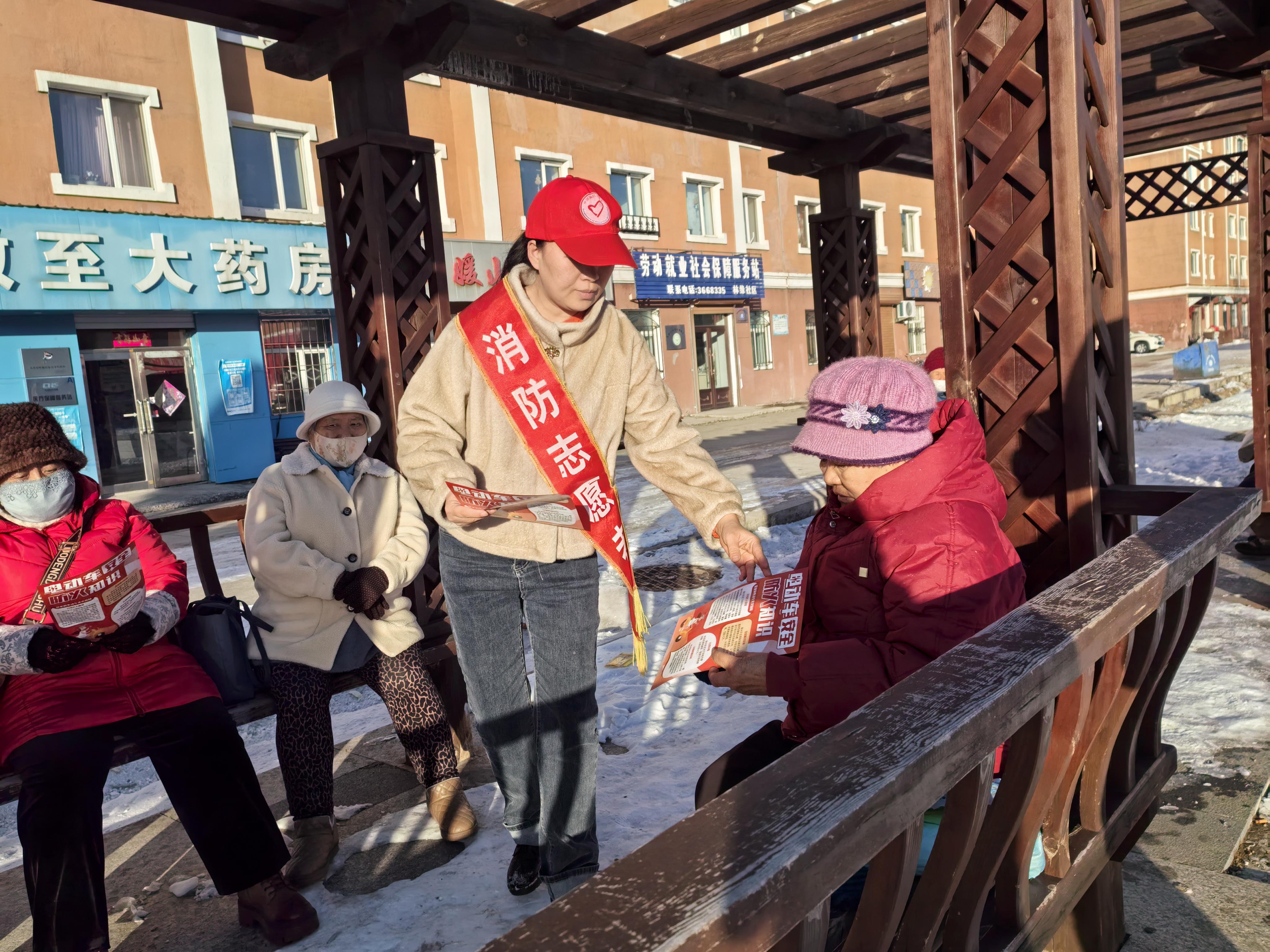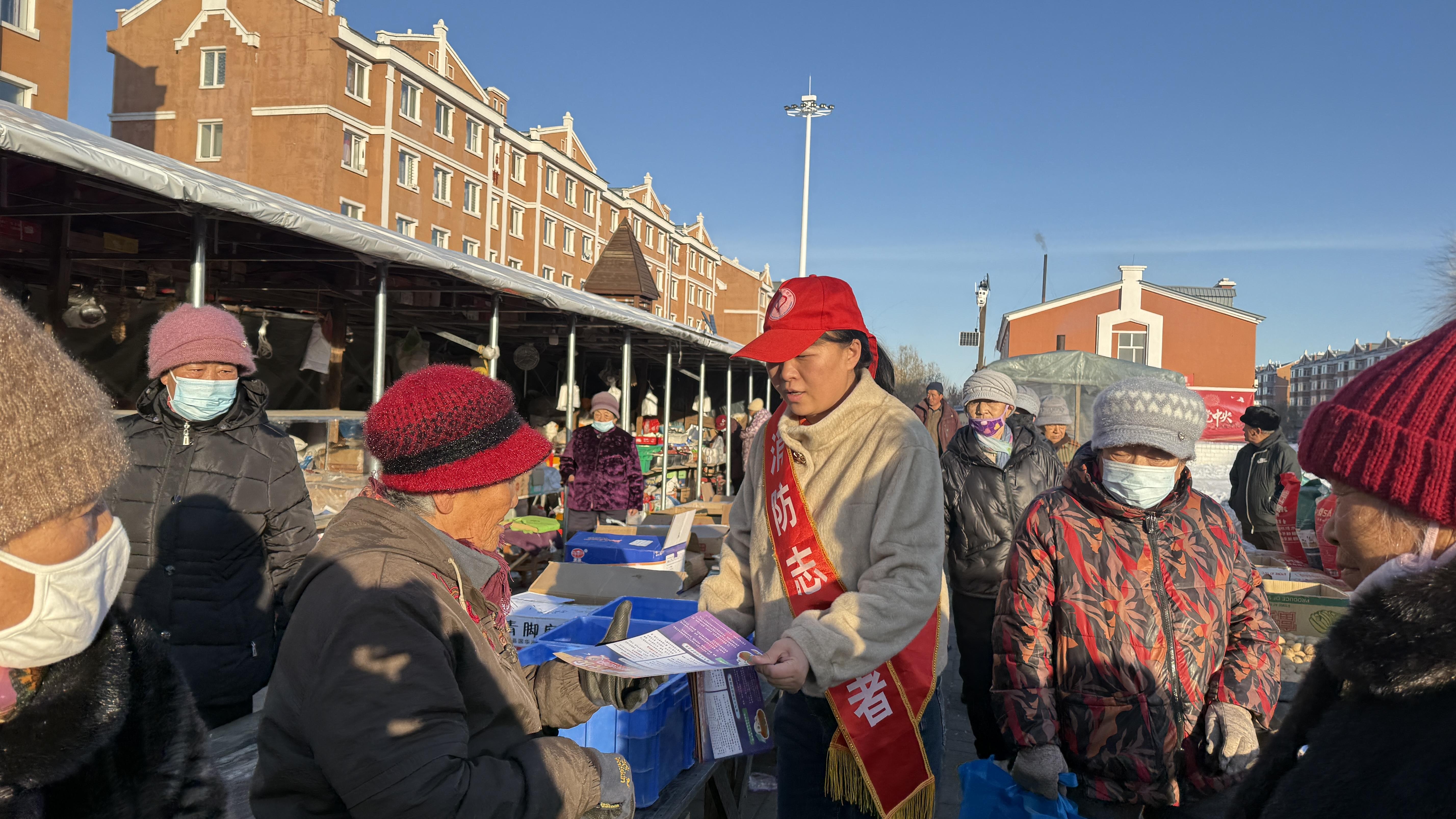 消防志愿者向居民群眾發(fā)放宣傳單并告知“三清三關(guān)”的重要性(胡春磊 攝)