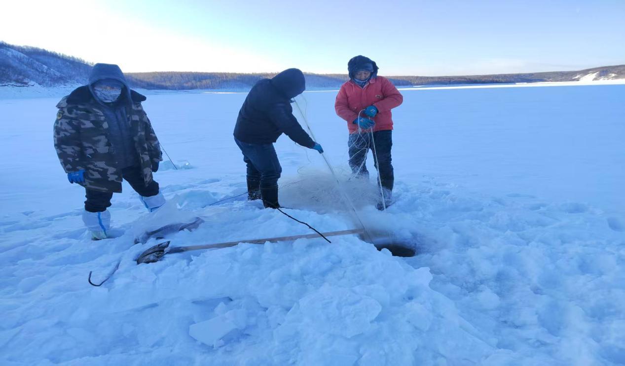 為確保首次冬捕成功,組建捕撈團(tuán)隊,邀請經(jīng)驗(yàn)豐富的漁工指導(dǎo),從漁網(wǎng)鋪設(shè)、冰面鑿洞到捕撈作業(yè),每一個環(huán)節(jié)都精心部署、規(guī)范操作,最終實(shí)現(xiàn)首網(wǎng)豐產(chǎn)的喜人成果。