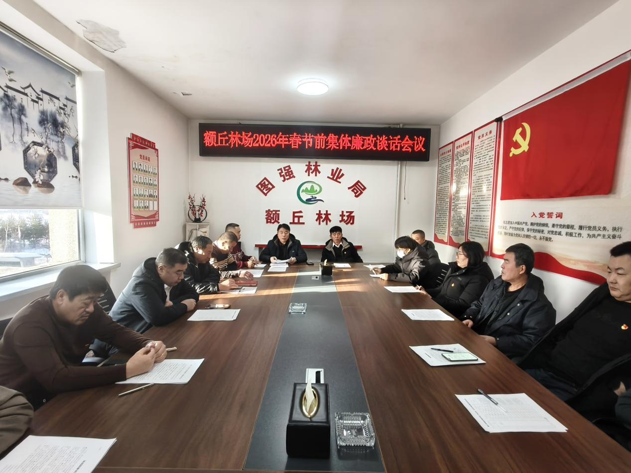 廉政談話明底線,承諾踐諾守初心。額丘林場召開春節(jié)前集體廉政談話會,專題傳達學(xué)習(xí)上級關(guān)于春節(jié)期間廉潔過節(jié)的通知要求,原文解讀相關(guān)通知精神與紀律規(guī)定,確保全體黨員干部精準(zhǔn)把握節(jié)日廉潔核心要義。會議結(jié)合關(guān)鍵崗位風(fēng)險特點,聚焦違規(guī)收送禮品禮金、違規(guī)吃喝等易發(fā)“節(jié)日病”,明確禁止性要求,督促黨員干部繃緊紀律之弦。談話會后,組織全體黨員簽訂《春節(jié)期間廉潔自律承諾書》,承諾書緊扣上級要求梳理8項核心準(zhǔn)則,從遵守中央八項規(guī)定精神到杜絕違規(guī)操辦婚喪喜慶事宜,逐條細化規(guī)范,推動廉潔要求內(nèi)化于心、外化于行。