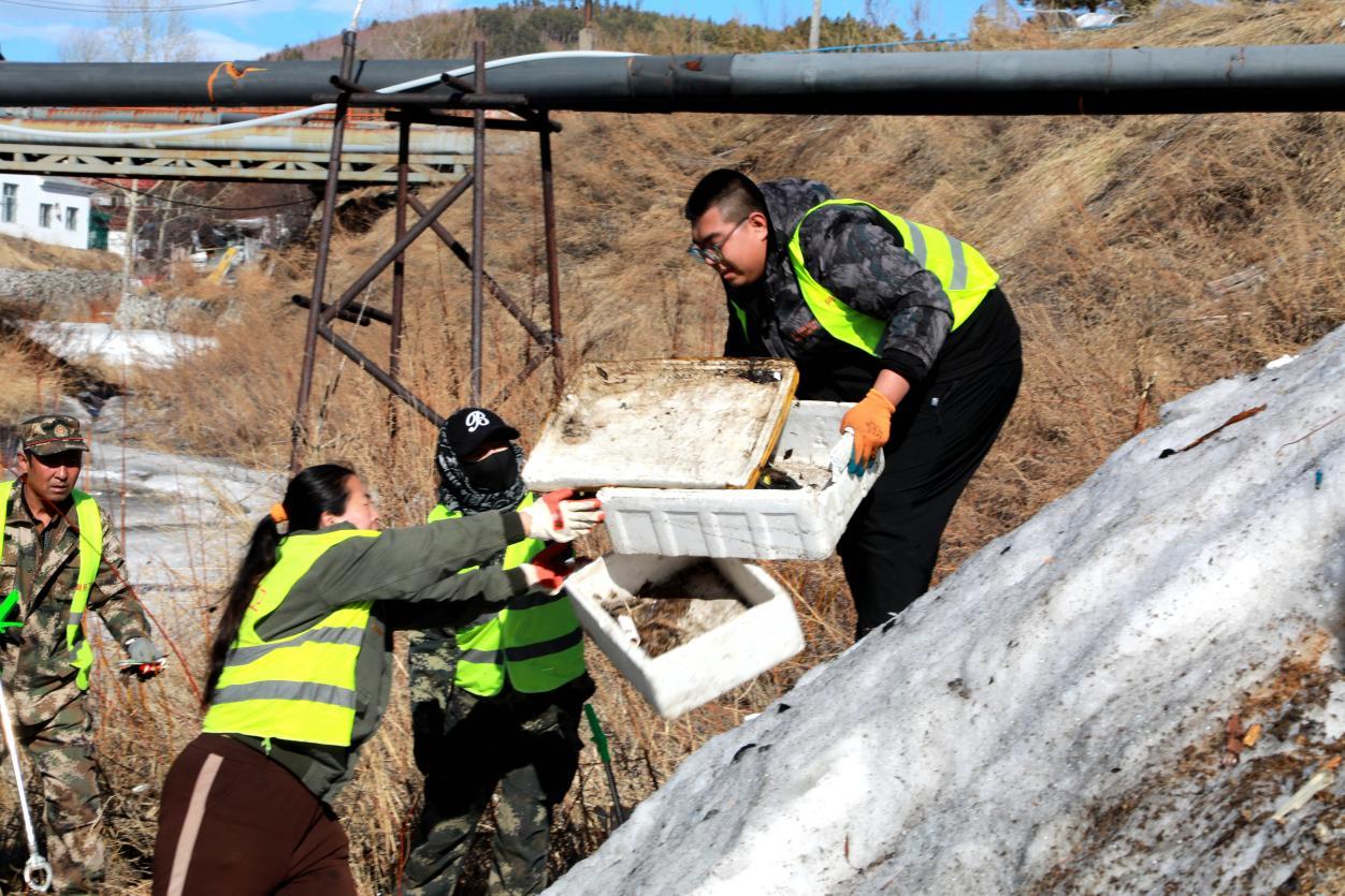 阿木爾林業(yè)局環(huán)衛(wèi)隊職工正在清理河道垃圾(王力 攝)