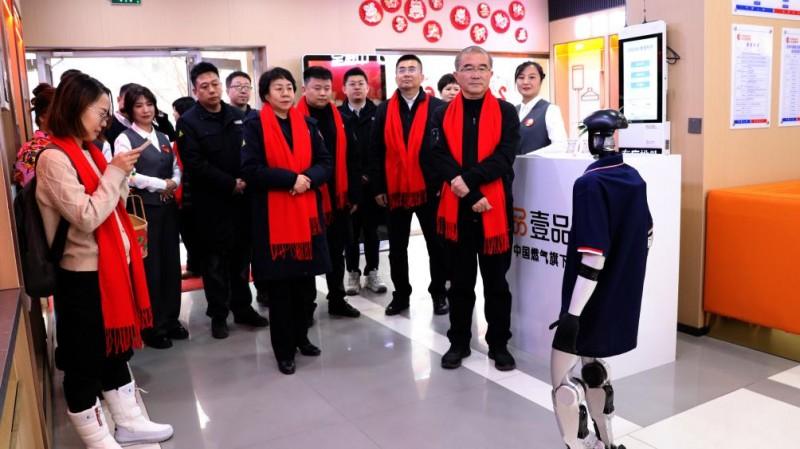 步入營業(yè)廳,機器人“慧小燃”屏幕泛起微笑:“劉主席,您好!”它清晰地介紹了沈陽中燃依托“壹品慧”平臺實現(xiàn)的轉(zhuǎn)型——從傳統(tǒng)燃氣服務(wù),擴展為集服務(wù)、零售與生活體驗為一體的綜合陣地。劉明輝參觀了產(chǎn)品展示區(qū),并與員工們一同將寫滿祝福的卡片和此次東北慰問行的精彩瞬間照片,親手貼上了“圓滿收官紀念墻”。他動情地說:“場站里的握手、崗位旁的交談……每一點關(guān)懷都深深烙印在我們心里,讓我們感受到的不僅是溫暖,更是沉甸甸的信任與鼓舞?!彼隙ǖ溃骸盃I業(yè)廳引入機器人導購,這小小的舉動體現(xiàn)出我們在工作中有想法,愿意求新求變,這就是未來中燃一定要有的品格?!?/span>