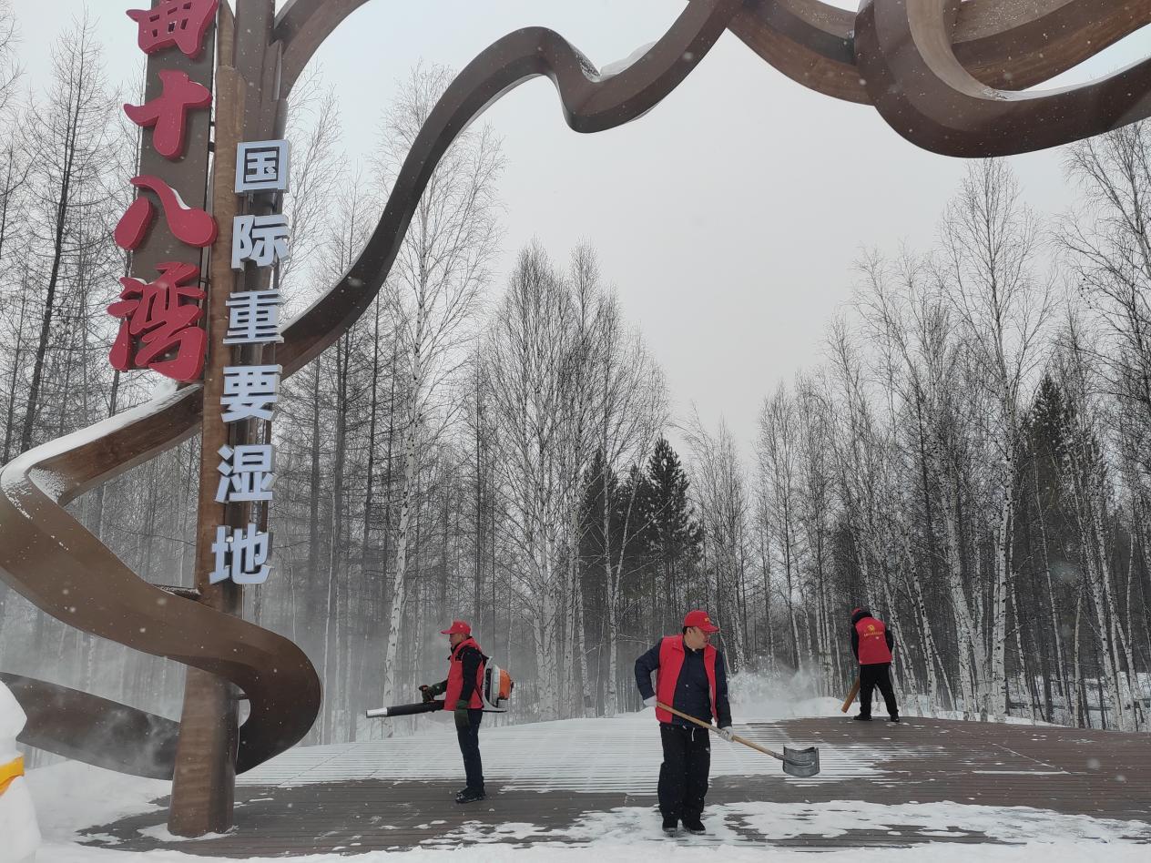 扮靚林海家園,守護(hù)平安出行。志愿者們走上街頭,手持雪鏟、垃圾夾、垃圾袋等工具,對(duì)轄區(qū)道路兩側(cè)、公共區(qū)域開展集中清潔,重點(diǎn)清理積雪殘冰、白色垃圾及公共設(shè)施小廣告,以實(shí)際行動(dòng)倡導(dǎo)綠色低碳生活方式,引導(dǎo)群眾養(yǎng)成文明衛(wèi)生習(xí)慣,共同守護(hù)整潔優(yōu)美的人居環(huán)境。針對(duì)景區(qū)積雪積冰問題,志愿者們分工協(xié)作、鏟冰除雪,清理步道、觀景臺(tái)等重點(diǎn)區(qū)域,及時(shí)消除安全隱患,全力保障游客和群眾出行安全。嚴(yán)寒中忙碌的身影,成為春日里最動(dòng)人的風(fēng)景,以實(shí)干彰顯奉獻(xiàn)本色,用堅(jiān)守傳遞雷鋒溫度。