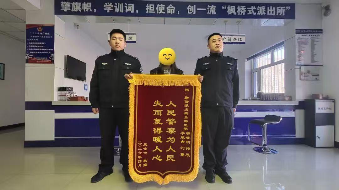 民警隨后將手機(jī)當(dāng)面交還給失主,失主看到失而復(fù)得的手機(jī),且內(nèi)部文件完好無(wú)損,激動(dòng)地向民警連連道謝。為感謝民警高效處置、為民解憂,失主特意制作錦旗,專程送到勤儉派出所,表達(dá)對(duì)民警的感激之情。